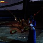 While talking, he proceeds to baptise Elisabeth, who struggles against him. This is where we intervene. DeWitt has lots of anger bottled-up, and all gets loose now. He starts wrestling Comstock (we still have perfectly good weapons in our pockets), bashes his head repeatedly against the font and finally drowns him in it. It’s yet another well executed scene (as I’ve said before), even if the only thing for us to do is pressing a button. The “press the button to attack Comstock”-mechanic isn’t very good. No agency at all, a fully scripted scene, would have been worse. Which reminds me to go back there and see what happens if we don’t do anything…