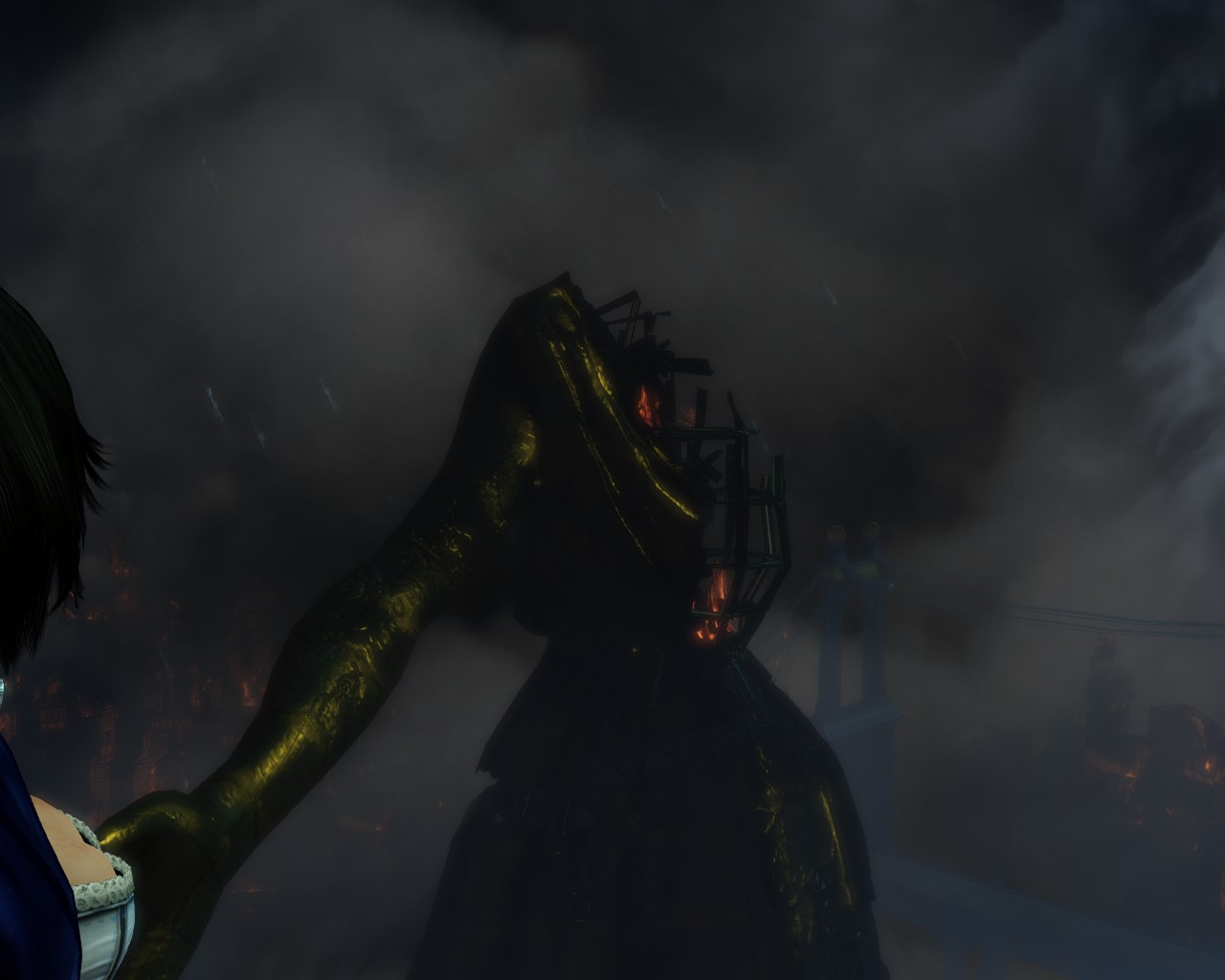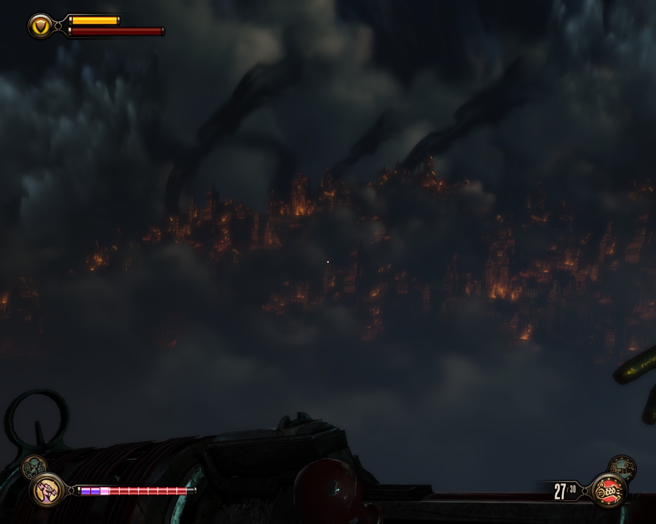 When all is over, we meet Elisabeth at the bow. Below us lies Columbia, burning. To our right, the remnants of Monument Island.